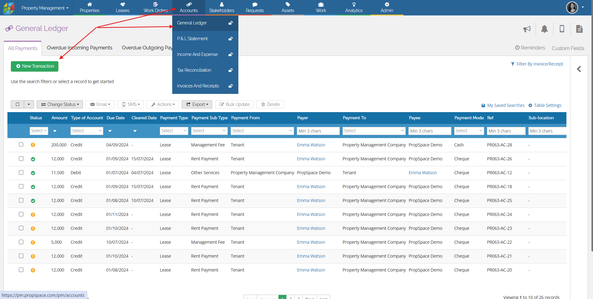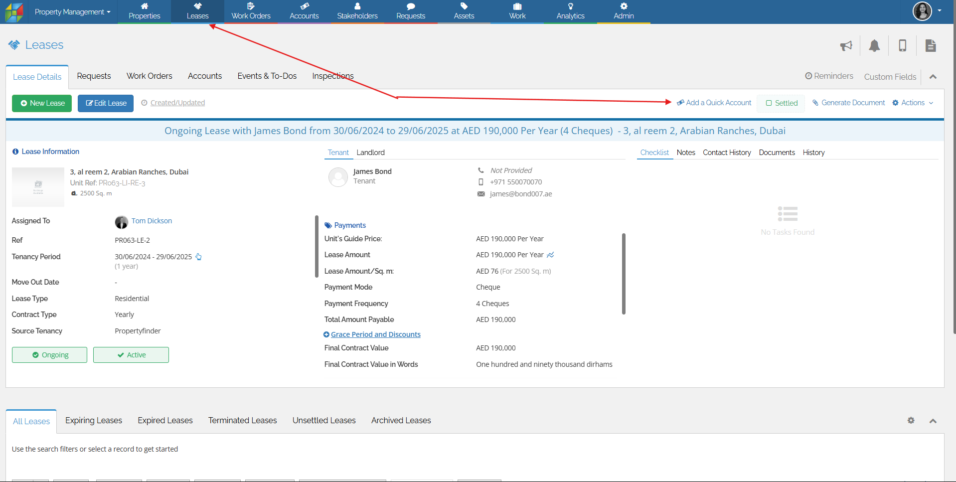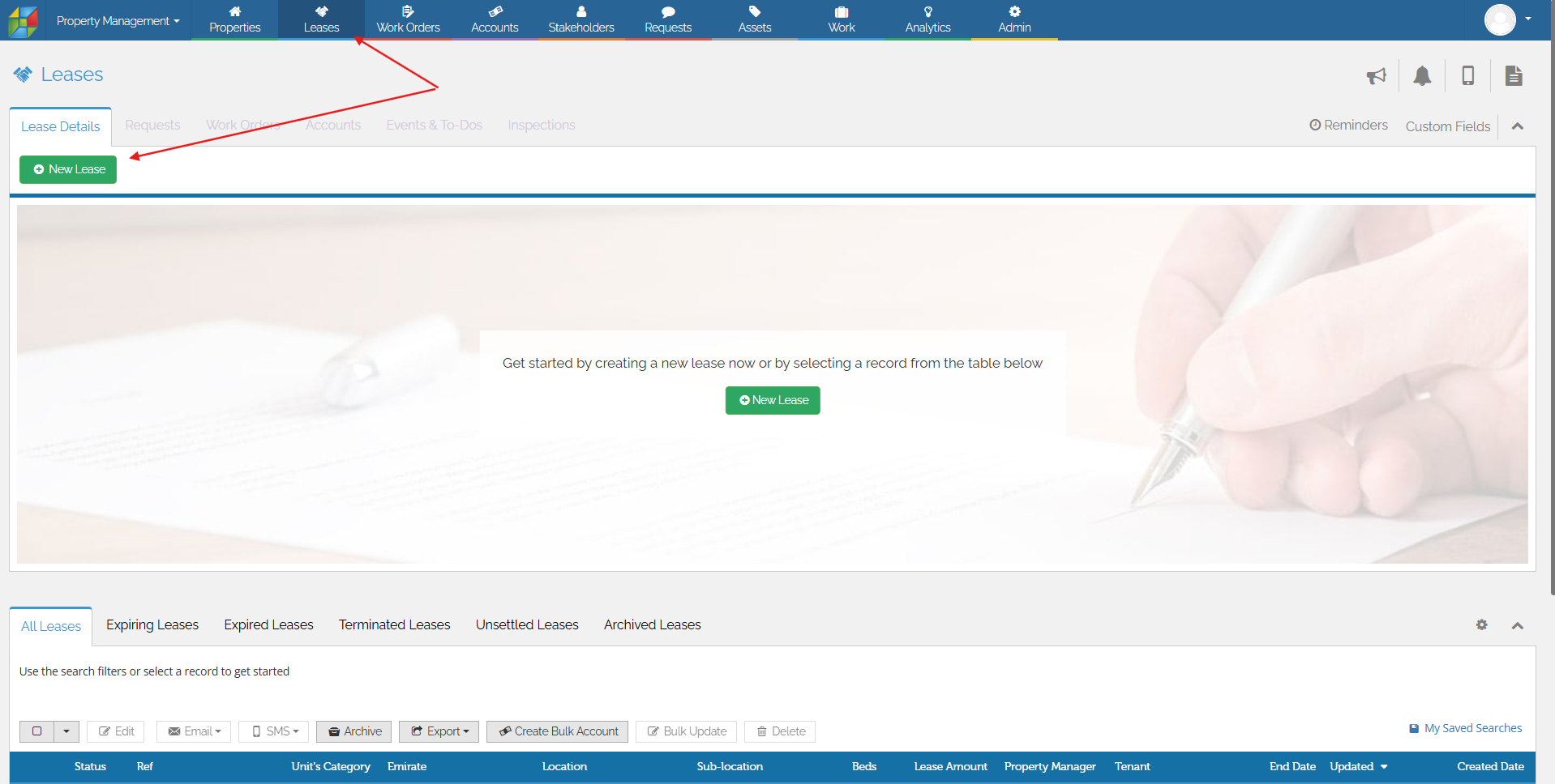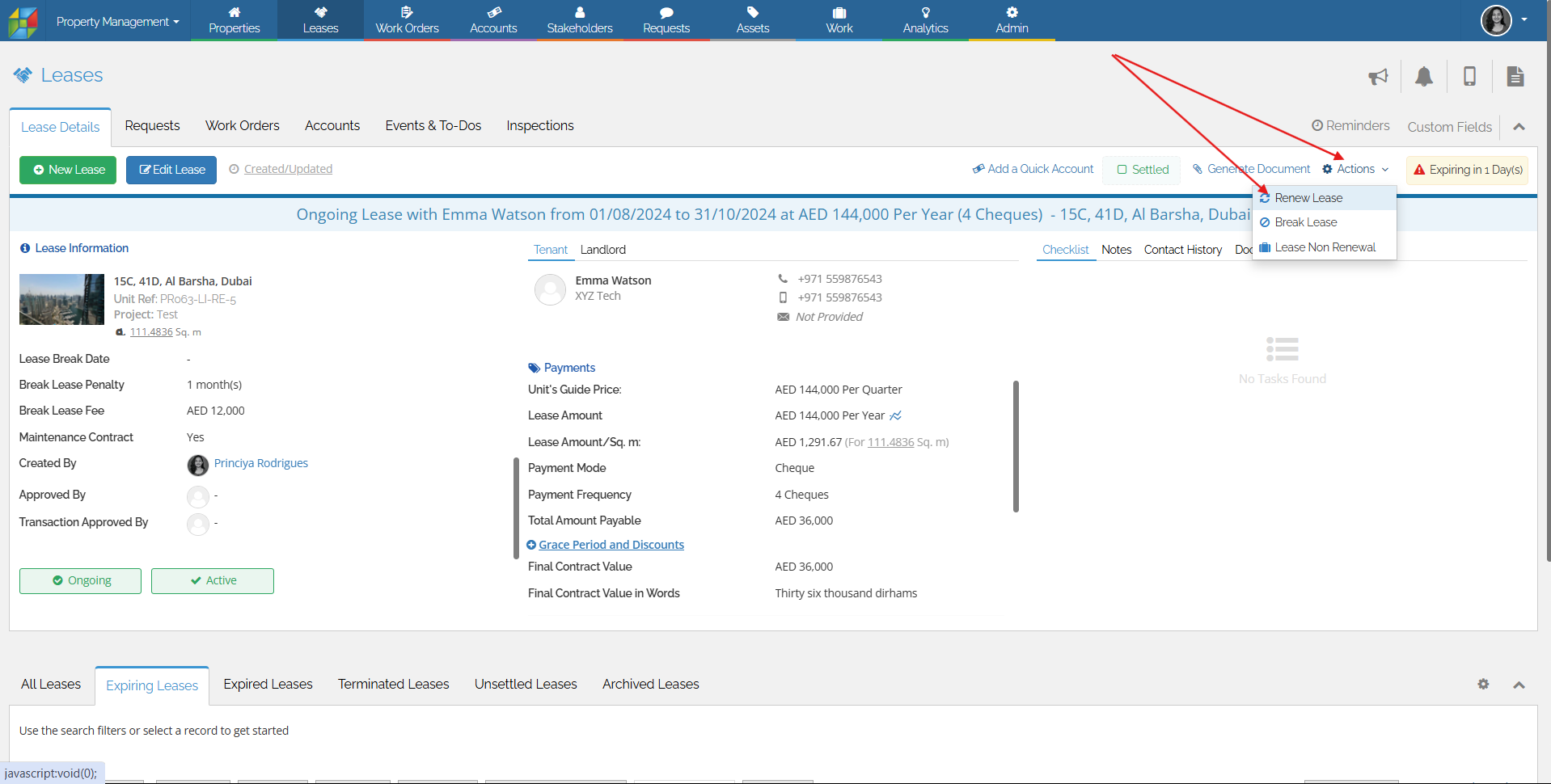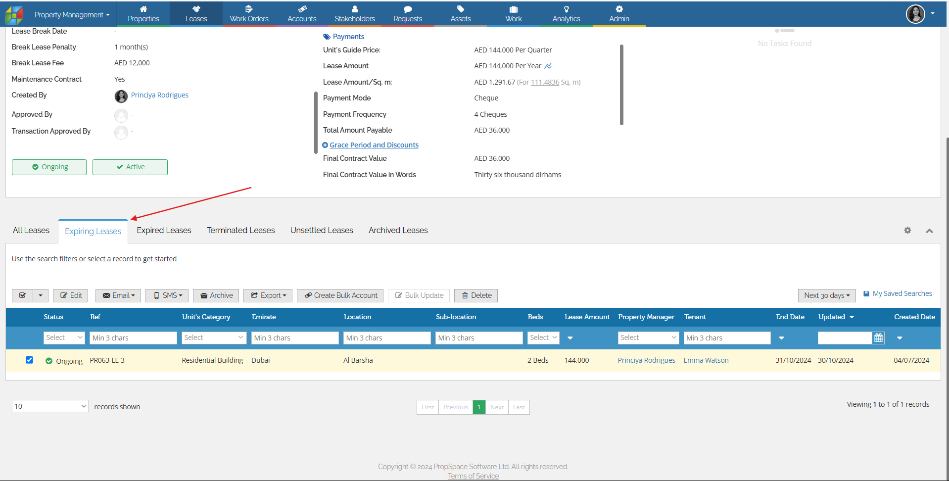 Navigate to the Expiring Leases tab to find leases nearing their end.